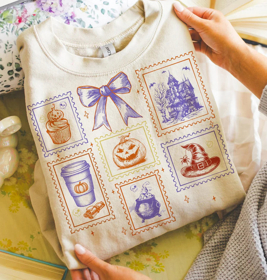 A cute little collection of Halloween stamps, printed on an ivory Comfort Colors tee.